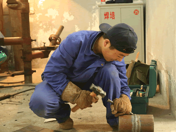 一身藍(lán)色粗布工作服,手持電焊工具,穿梭在各個(gè)電焊現(xiàn)場,或親手上活,或指點(diǎn)同志,或手把手示范教學(xué),42歲的袁培東是整個(gè)九冶建設(shè)有限公司人心中的技術(shù)能手。